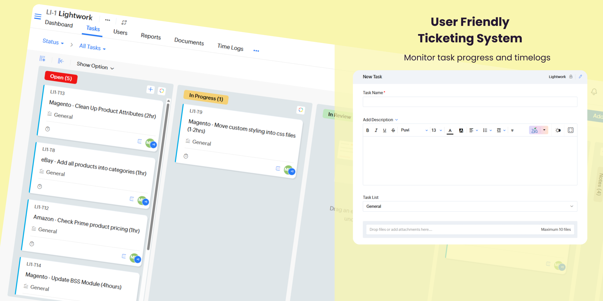 No more chasing developers. All Lightwork clients are provided with their own secure ticketing portal